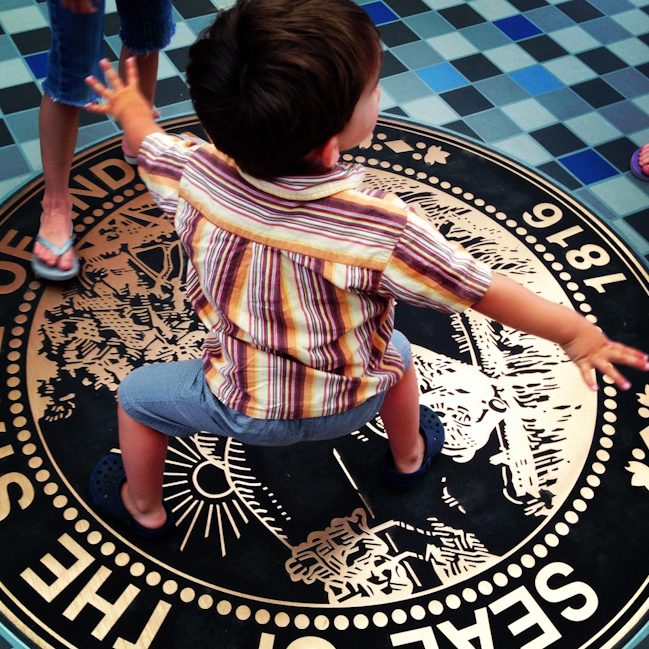 It has been HOT here (104 degrees today) so we've been staying cool as best we can. There are a ridiculous amount of fun playgrounds so we try and hit those up as much as we can. There is a fabulous Children's museum that the kids really liked. We went to a movie (that shut off 5 mins from the end because the theatre blacked out) and played at the pool. We were also lucky to cling on to a very cool family event that Joy & Hafe attend in the summer at their friend's place. It's called the Illympics and it is two days of events for the kids to participate in. It started with an opening ceremony and flags-- then a passing of the torch. Then we headed to a track where the kids did sprints, hurdles, long jump, soccer kick, baseball throw, and a long distance run. Lars got right into it competing with the other three year olds. There was swimming and pony rides and bowling and a bunch of great toys (like that little roller car)--such a treat of a time for a kid. I will post some pictures from that later.